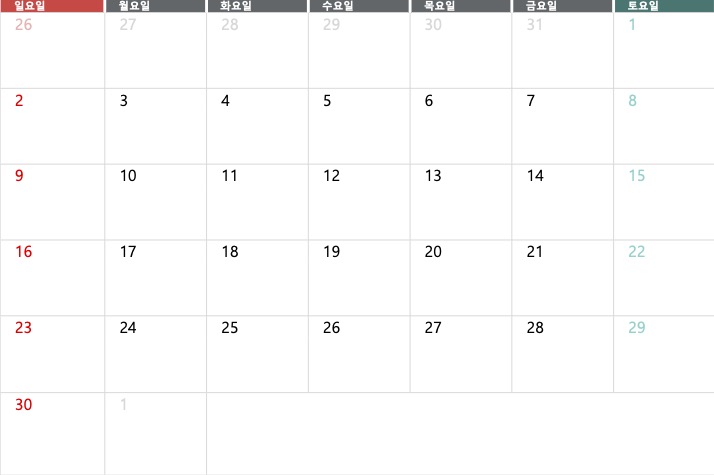 한글 달력과 영문 달력을 바로 볼 수있고, pdf와 엑셀 파일을 받아서 수정해서 사용할 수도 있습니다.