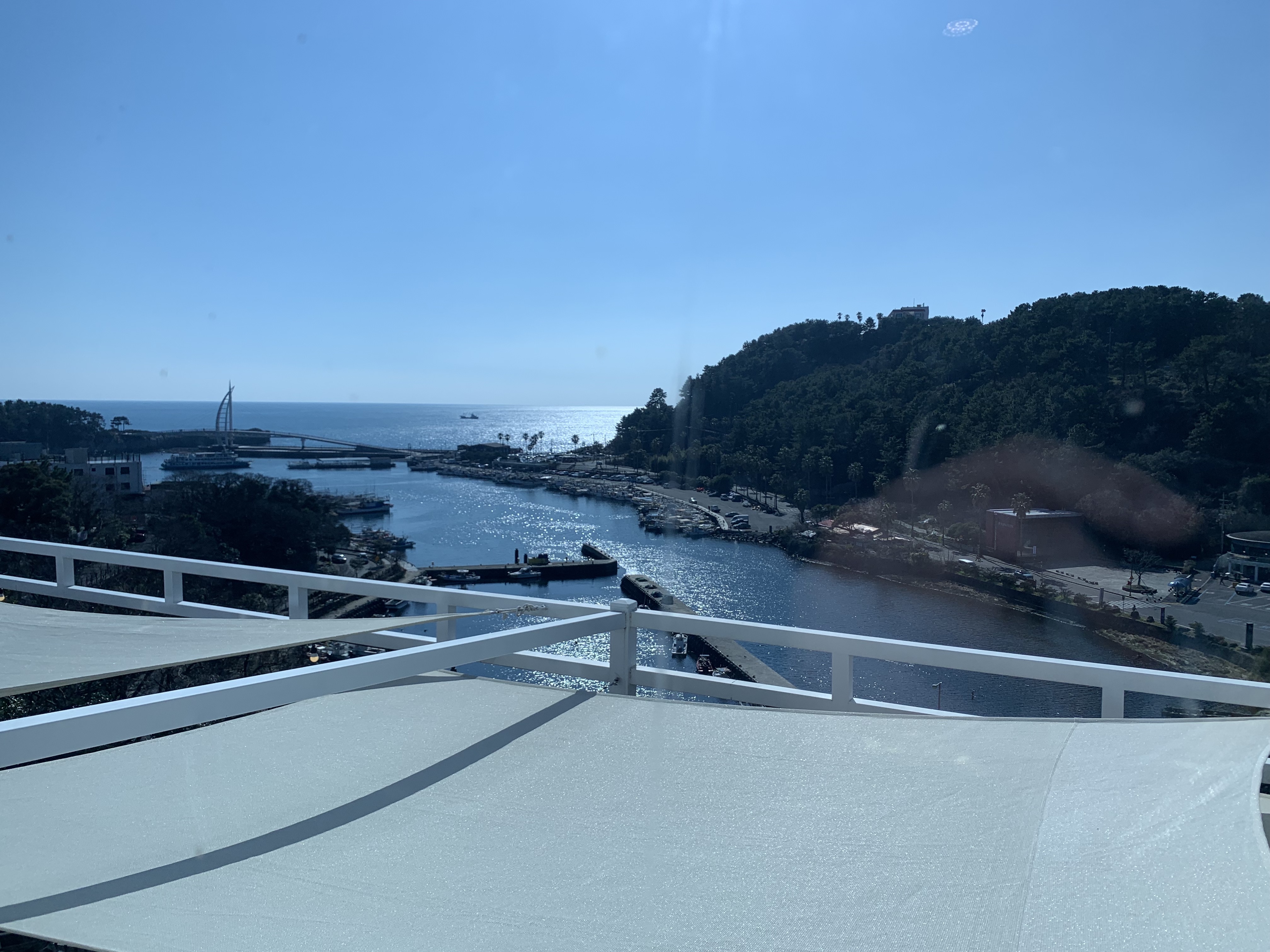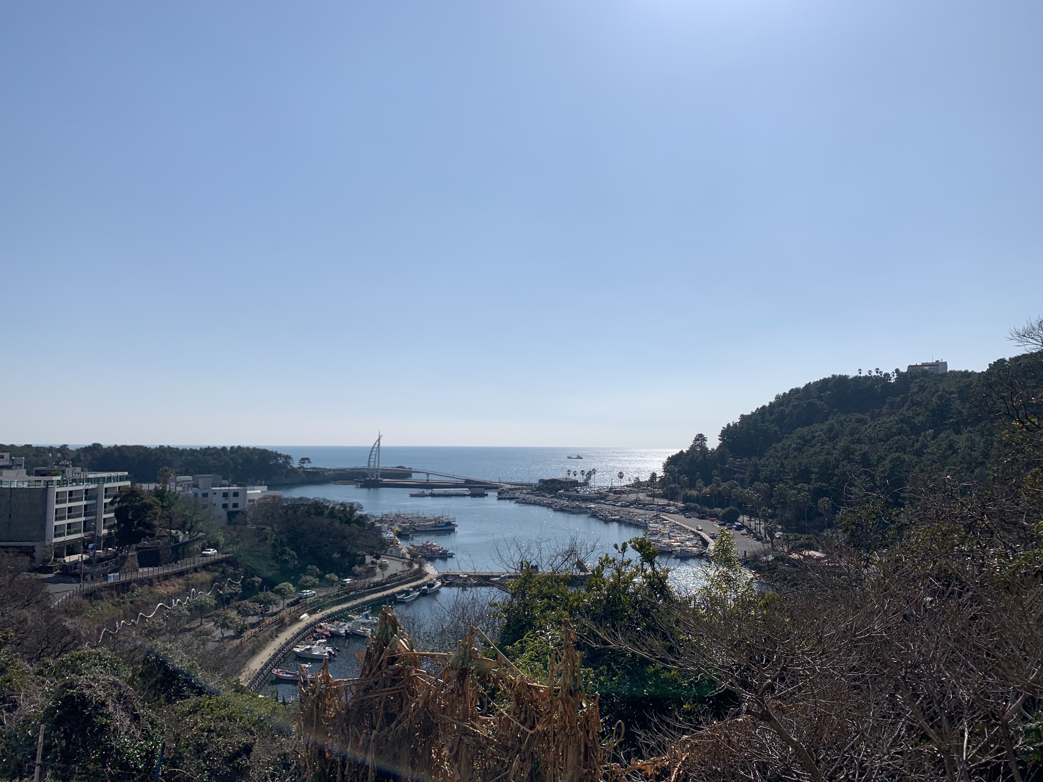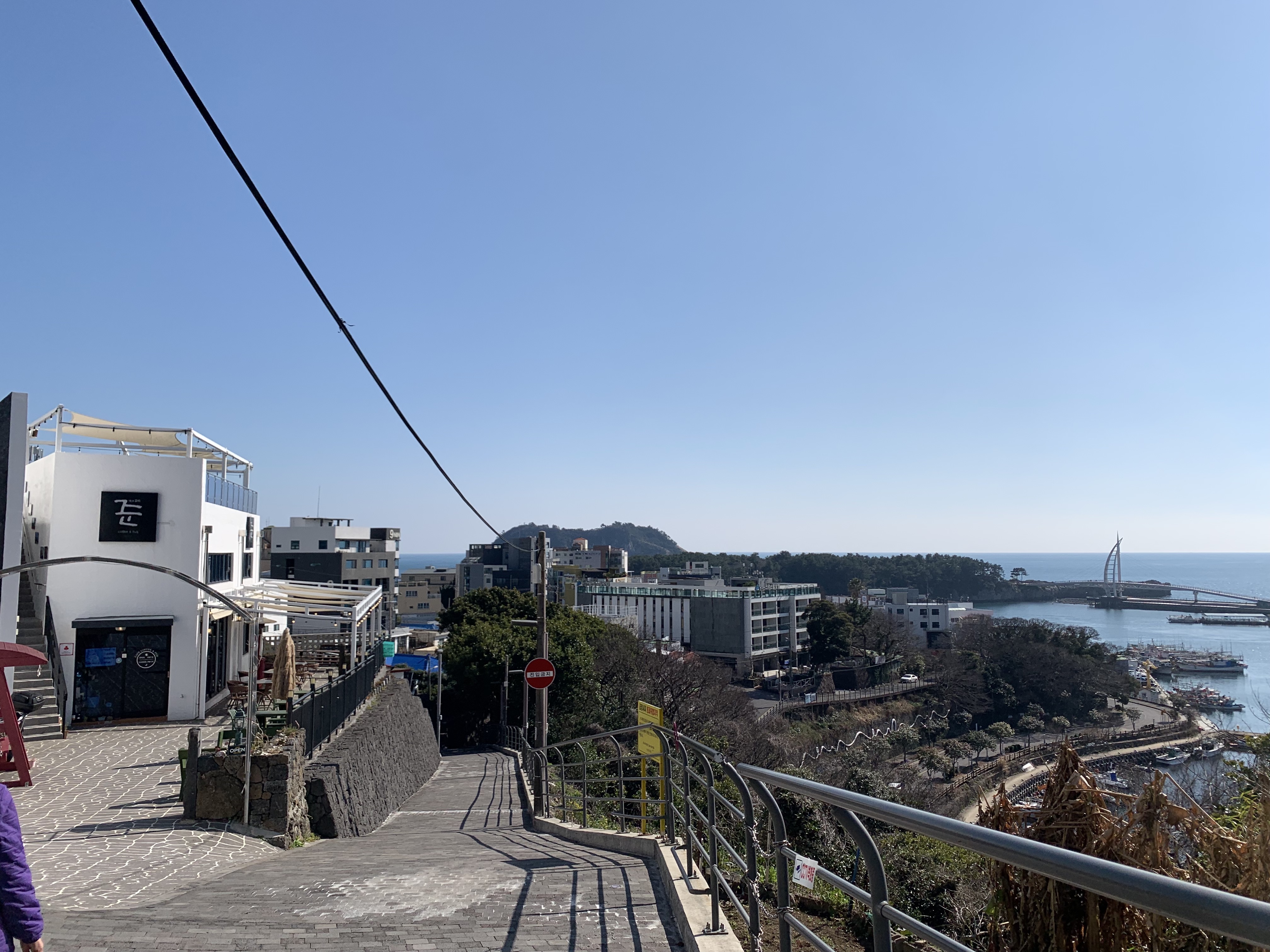 카페 2층에서 천지연 주차장이 바로 보이고, 새연교가 있는 포구를 바로 볼 수 있습니다.