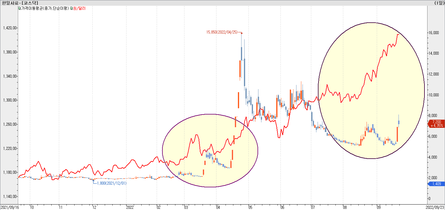 - 최근 주가 흐름은 7~8월 사이 환율이 횡보 하다가 상승 하는 시점에 같이 상승 하였고, 러시아 동원령 뉴스 가 나오면서 환율의 추가 상승과 곡물가 인상이 예상 되면서 오버 슈팅 나온 상태이다.