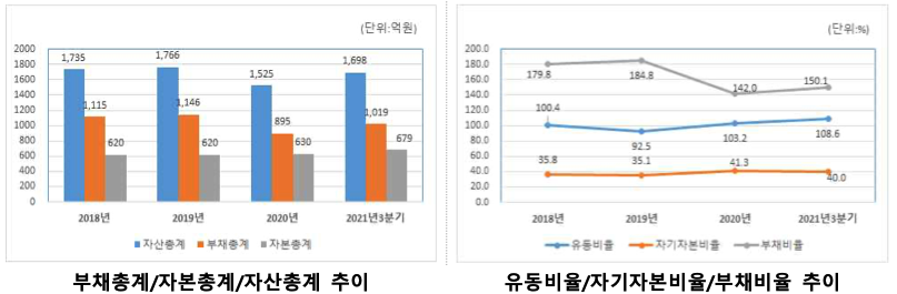 - 최근 3개년 동안 영업이익 연속 흑자를 기록 하고 있으며, 특히 2021년은 영업이익율이 전년 대비 3배 이상 증가한 136억원을 기록 하였다.
