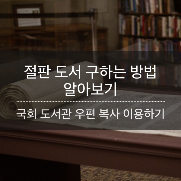 중고책으로 구매하고 싶어도 절판되어 구하기 쉽지 않거나 중고책 가격이 너무 올라 부담스러운 분들이 편리하게 이용할 수 있는 방법을 공유드립니다. 국회도서관 자료 복사 서비스를 이용하는 방법인데, 국회도서관에 원하는 도서를 찾아 복사신청을 하여 우편 배송받을 수 있습니다. 국회도서관에서 자료 복사 서비스 이용하는 방법과 비용을 정리하였으니 참고하시기 바랍니다.