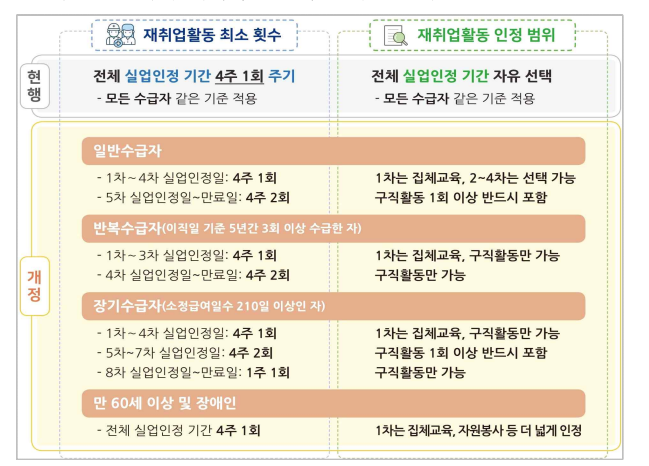 - 실업인정 차수별 재취업활동 횟수와 범위에 따라 수급자별 특성에 맞게 차별 적용