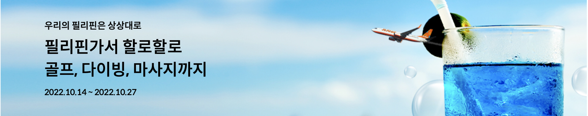 | 내용 | - 필리핀 전 노선 사용 가능 - 선착순 지급 (소진 시 종료) - 사용기간: 22.10.14 ~ 22.10.27 - 탑승기간: 22.10.14~23.03.25 - 성수기 사용 가능 |