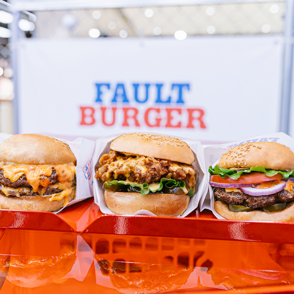 테니스 경기의 용어 FAULT는 서브한 공이 서비스 코드로 바르게 들어가지 않거나 규칙을 위반하는 것을 말하는데, FAULT BURGER는 버거의 일반적인 규칙을 넘어선 유니크한 버거라는 뜻입니다.