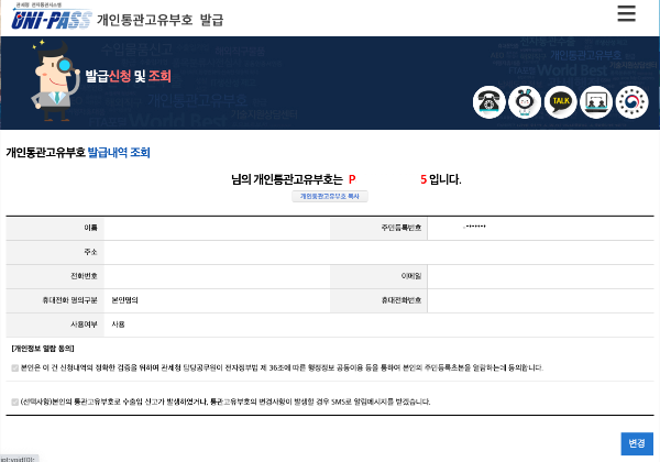 5. 개인 통관 번호 발급 완료
